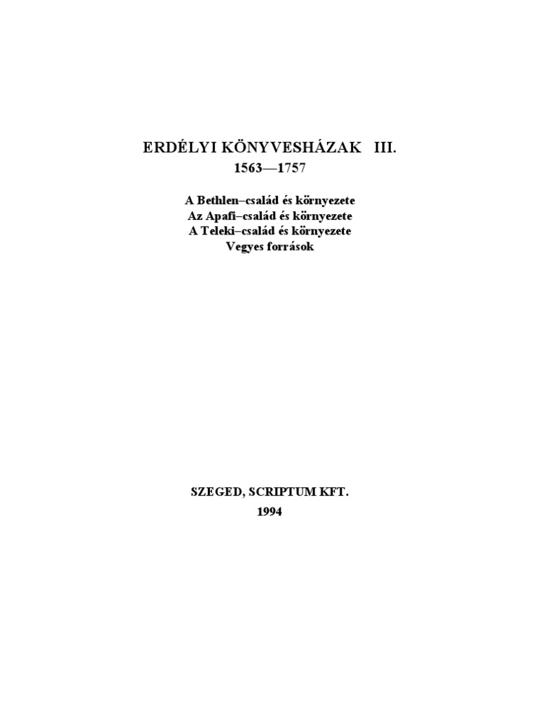 Erdelyi Konyveshazak Iii